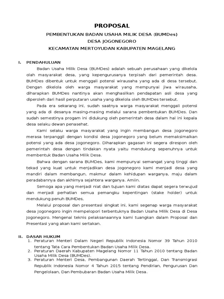Pertama, proposal usulan masuk ke badan pemberdayaan masyarakat dan. Download lengkap contoh proposal bumdes tahun 2020 beserta lampirannya. Badan usaha milik desa dan peraturan daerah kabupaten banyuwangi nomor 21. Bagaimana kita mengukur keberhasilan suatu inovasi? Proposal bumdes adalah sebuah dokumen yang berisi usulan rencana program dan kegiatan manajemen usaha badan usaha milik desa (bumdes) untuk .